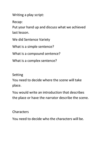 Oct 13, · How to Write a Simple Screenplay (for Kids) Steps Download Article. 1. Write or type the name of the play on a piece of paper. When thinking of a name, make sure that you do not plagiarize the Community Q&A. Tips. Always make sense and proofread your work, or you will not make sense and will 69%() Oct 26, · A writer’s first play should probably have somewhere between three and eight characters. Each character wants something and has a goal or objective. Kids can list each character and give detailed descriptions for each one, including their name, age, physical appearance, personality, hobbies and interests, fears, secrets, abilities, motivations, Estimated Reading Time: 4 mins Step 1: When first teaching students how to write a play, it's easiest to use a familiar story, such as a fairy tale. After reading aloud the chosen story, discuss the basic elements of fiction: Title: the name of the story. Characters: the people or animals in