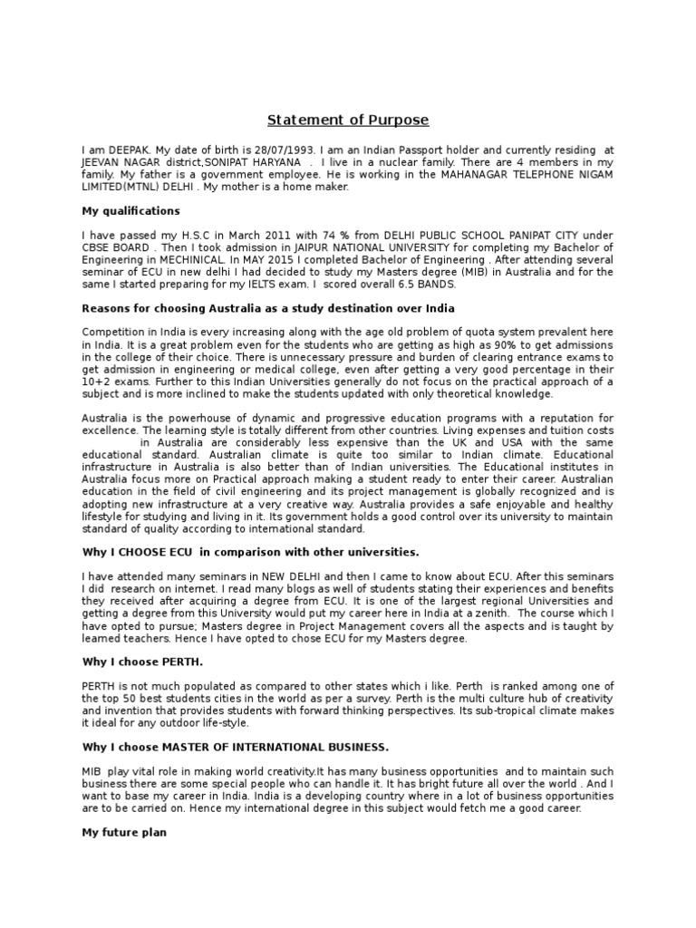 Do not exceed the given word limit. Be crisp, do not flatter in your language. Avoid too many technical terms. Do not lie in your Statement of Purpose, dishonesty may lead to rejection. Beware with humour, it can backfire! Recommended articles. What are Study Abroad Intakes? The challenges of choosing the right course when studying abroad Our experienced IDP counsellors will help you put together your application and certify the supporting documents. Why Study Abroad See the world, experience a new culture, dive into a world-class education — and prepare for your global future.